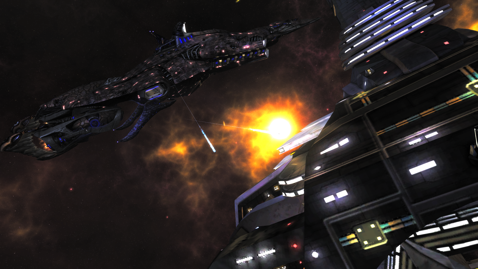 A deep-space habitat comes under attack